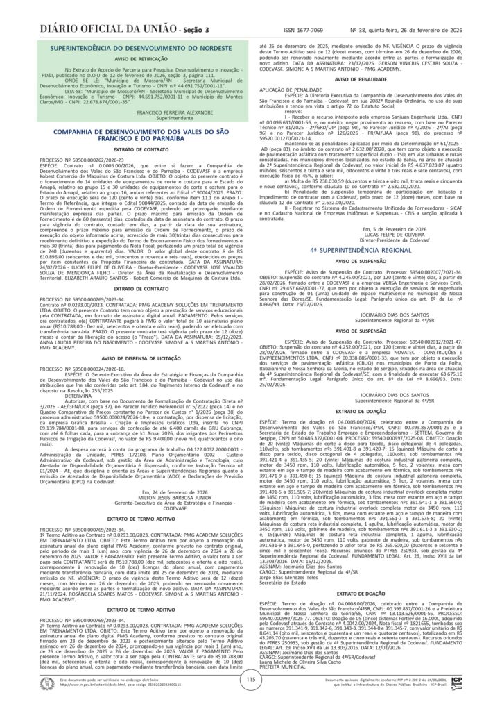 O extrato do Acordo foi publicado no Diário Oficial no dia 12 de fevereiro de 2026, reforçando o compromisso com a transparência e marcando oficialmente mais um avanço na implementação da iniciativa.