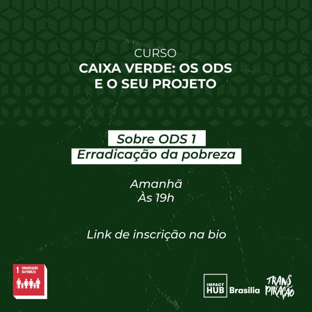 Você sabe o que é ODS e como aplica-los nos seus negócios? O projeto Caixa Verde, realizado Escola Akasha em parceria com o Impact Hub Brasília, é uma jornada de 19 semanas que busca difundir os conhecimentos sobre os Objetivos de Desenvolvimento Sustentável (ODS) da ONU. O curso é GRATUITO, no formato de lives que acontecem toda Quarta-Feiradas 19h às 20h30, e POSSUI CERTIFICADO. Cada semana terá uma aula para debater sobre 1 dos ODS.