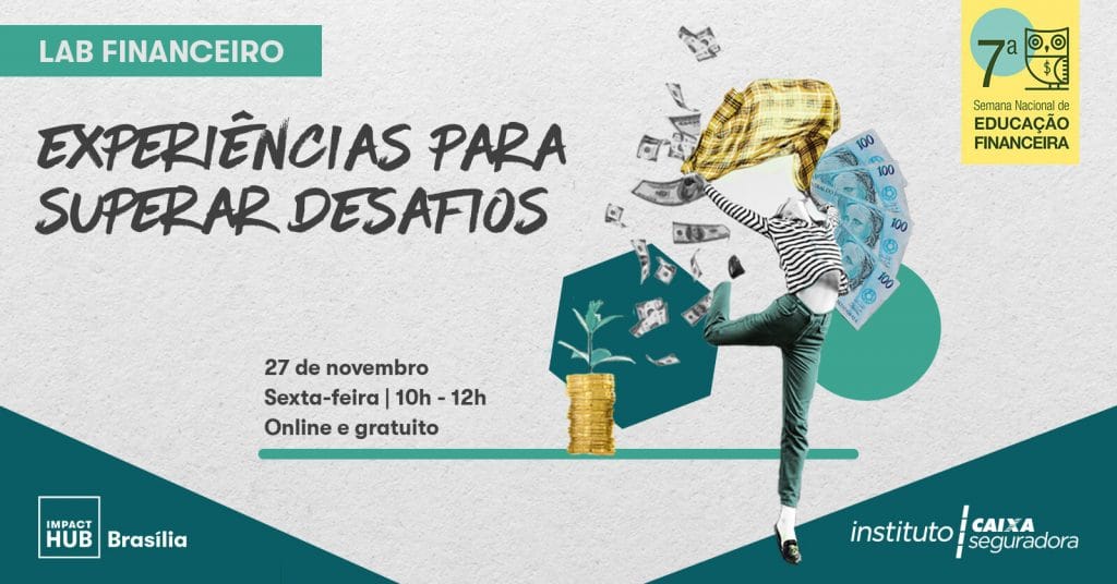 Nessa sexta-feira, dia 27, tem oficina online com o tema “Experiências para superar desafios” de 10h às 12h! A oficina faz parte da programação da Semana Nacional de Educação Financeira (ENEF) e é uma inciativa do Lab Financeiro, programa realizado pelo Instituto Caixa Seguradora e pelo Impact Hub Brasília.